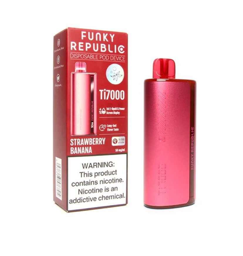 & Free ShippingMade by ELFBAR, Funky Republic Ti7000 ( 7000 Puff ) Smart Disposable Device is an innovative disposable that features a liquid and battery life indicator display with long-lasting flavor and 12.8ml of 5%nic that lasts approximately 7000 puffs.